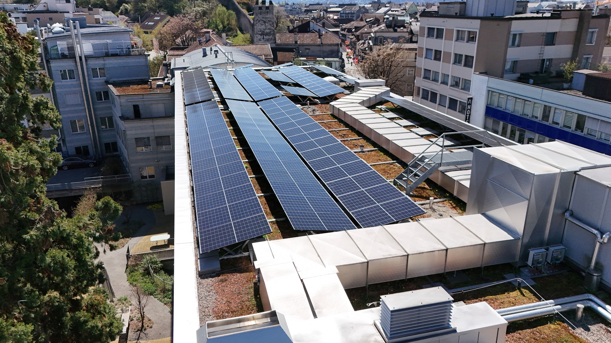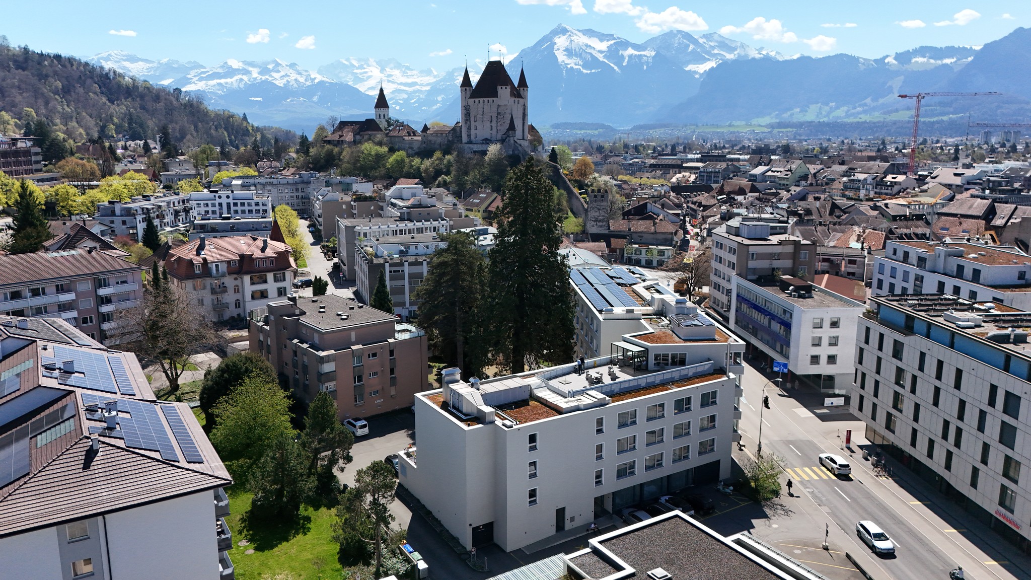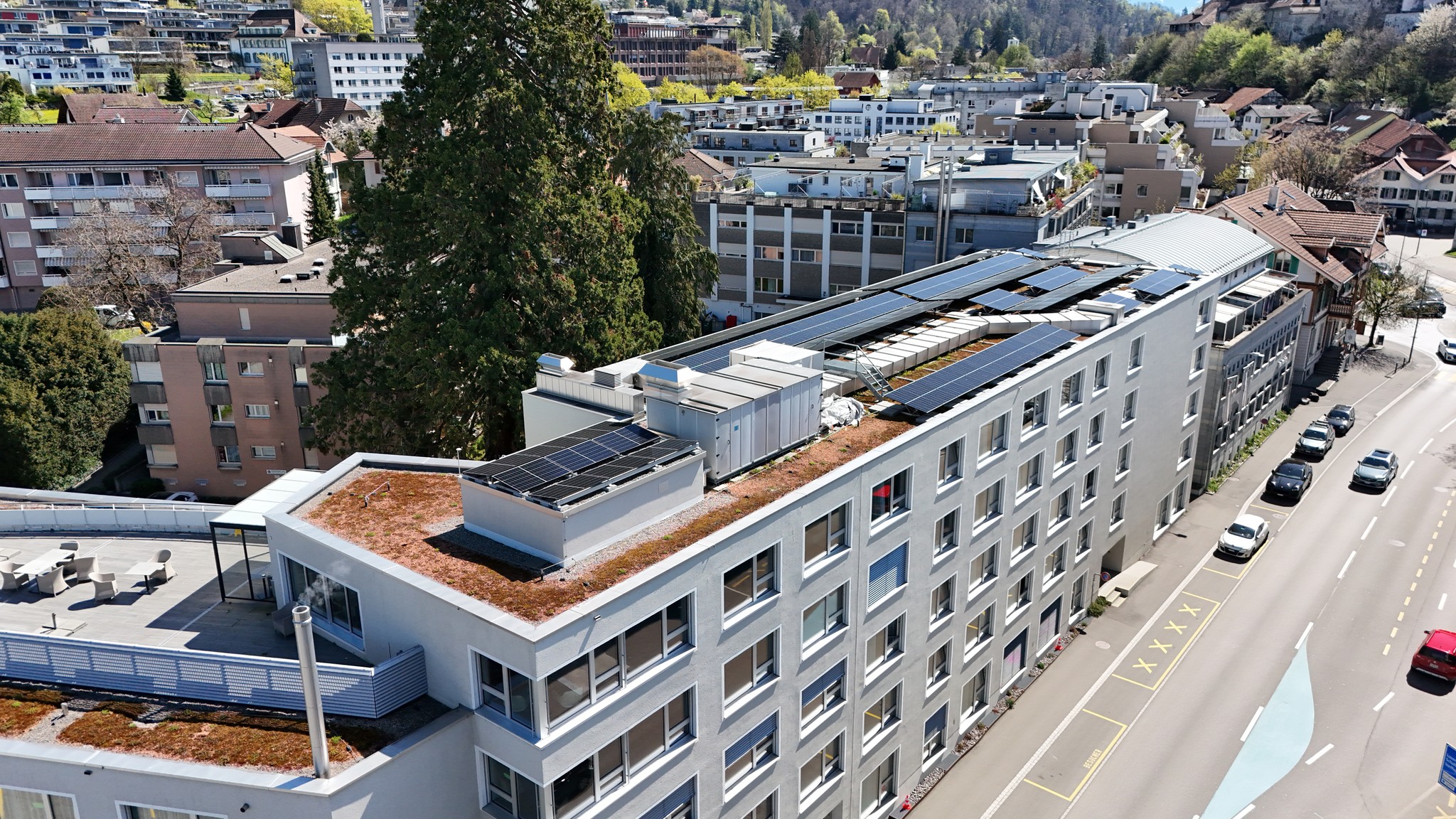 Auf dem Dach eines Pflegezentrums in Thun entstand eine leistungsstarke Photovoltaikanlage mit 73 kWp und 149 Modulen. Sie nutzt die Sonnenenergie effizient und wandelt sie in sauberen, nachhaltigen Strom um. Ein zukunftsorientiertes Investment in die Energieversorgung der Liegenschaft. Dank des hohen Stromverbrauchs wird ein Grossteil des produzierten Solarstroms direkt vor Ort genutzt. Dieser hohe Eigenverbrauch steigert die Wirtschaftlichkeit der Anlage erheblich und reduziert die Energiekosten. Mit einer Jahresproduktion von rund 70'000 kWh spart die Anlage etwa 8,9 Tonnen CO₂ ein.